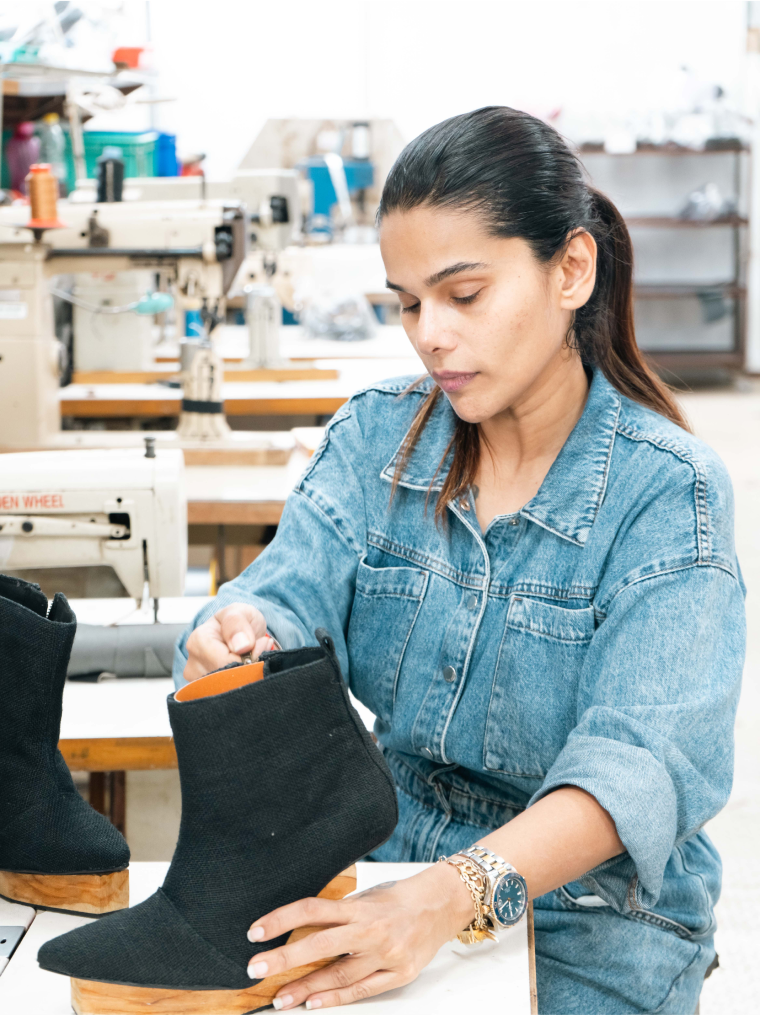My background in environmental sciences opened my eyes to the pressing need for human lifestyles shaped by mindful practices. Through this, I became drawn to the concept of creating a paradigm for footwear shaped by natural materials - fabric, wood & metal. I immersed myself in the art of weaving, learning the ins and outs of a loom by heart, and by hand.